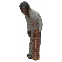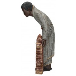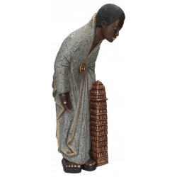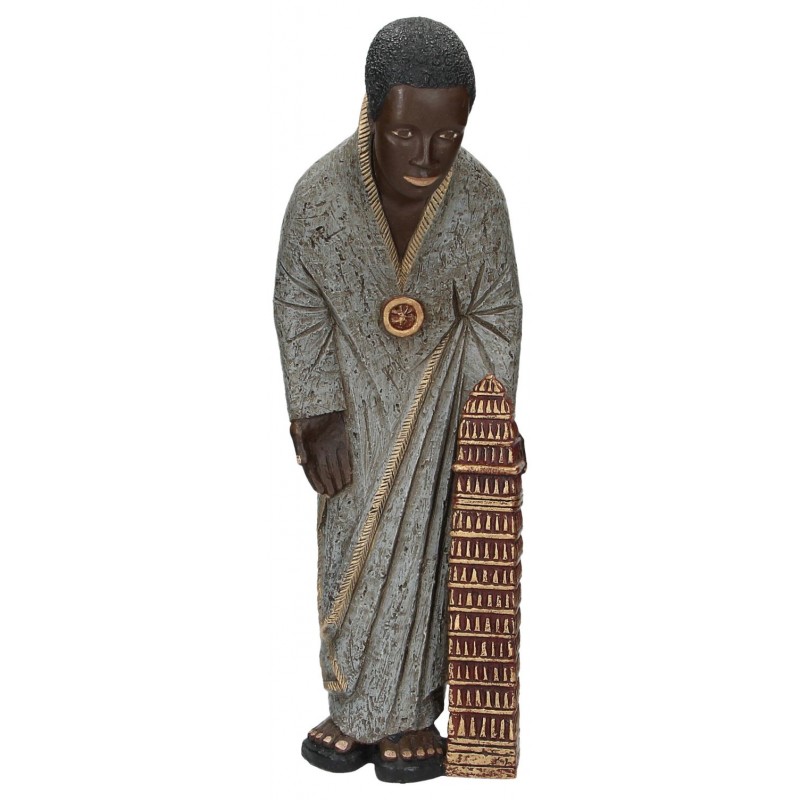 Mage Melchior courbé en pierre reconstituée colorée, fabriqué par les Petites Sœurs de Bethléem. Il mesure 37 cm de haut et vient compléter la crèche de 27 cm, disponible dans la même collection. Idéal pour une décoration de Noël originale et intemporelle.