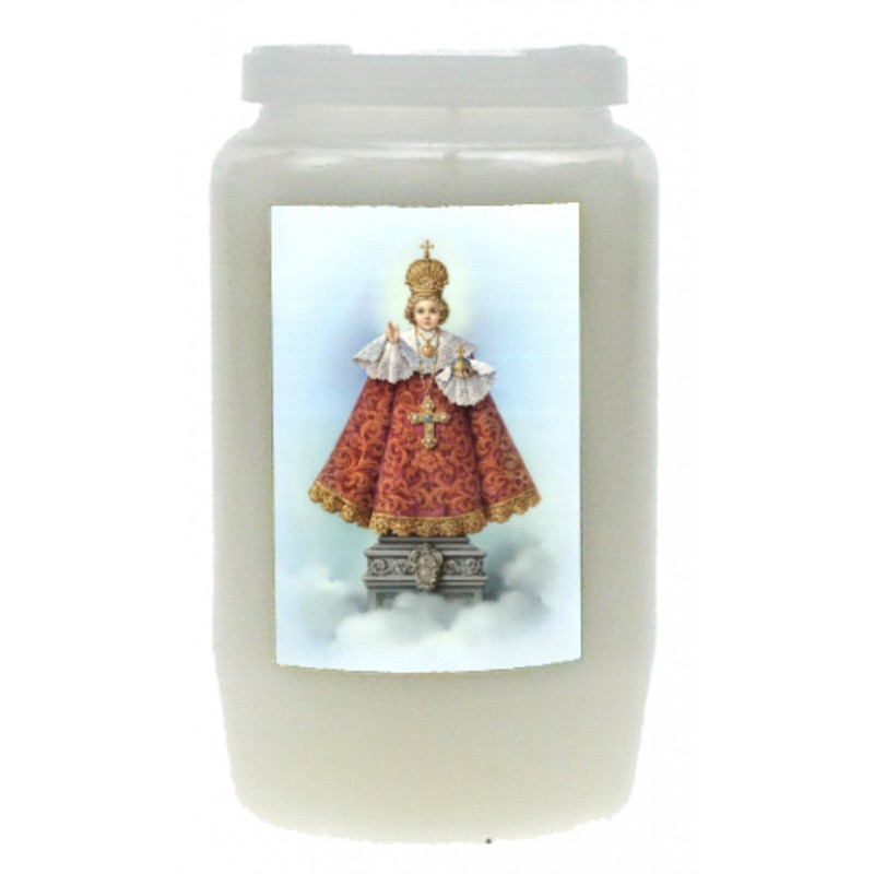 s'agit d'une statuette d'environ 48 centimètres, faite de cire et située à Prague. Elle représente l'Enfant Jésus, levant la main droite en signe de bénédiction et tenant le globe terrestre de la main gauche. Elle est également coiffée d'une couronne. La couronne et le globe son des symboles royaux manifestant de la toute puissance de Jésus. Il est notamment vénéré à Horion-Hozémont, où on le prie pour les familles et la protection de la vie naissante.