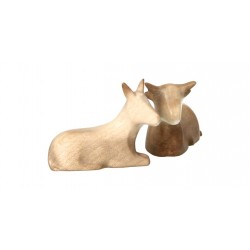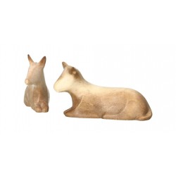 Ane et boeuf : crèche de Noël en bois Aram 10 cm (2 pièces)