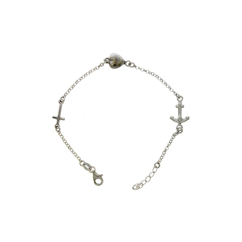 Bracelet argent rhodié - Foi-espërance-charité - 19 cm + Etui