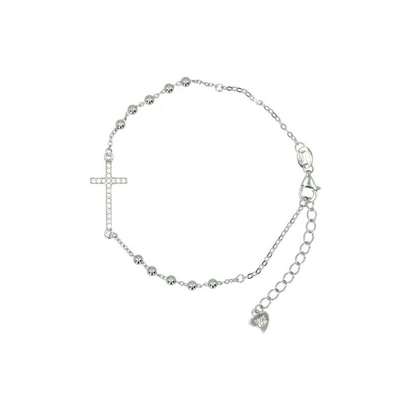 ;bracelet;argent;rhodie;avec;croix