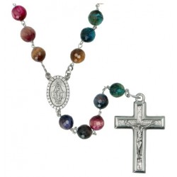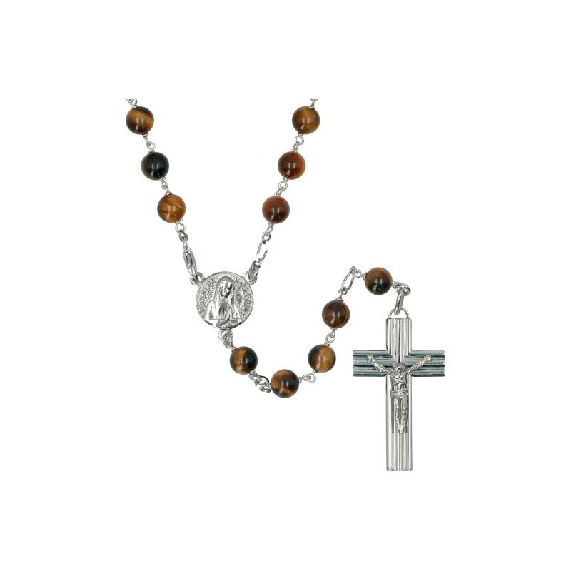 Chapelet Argent Rhodié - Oeil de Tigre 6 mm - Banneux