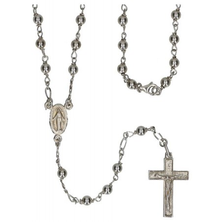 Chapelet Argent Rhodié - 4 mm + Mousqueton + Ecrin
