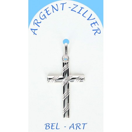 Croix Argent striée 25 X 17 mm