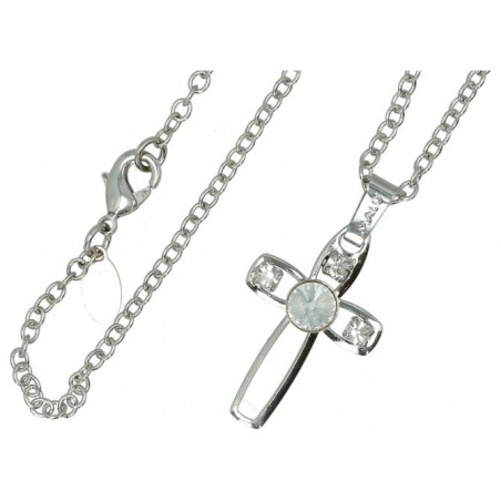 Pendentif croix avec strass bleu clair + Chaine 50 Cm
