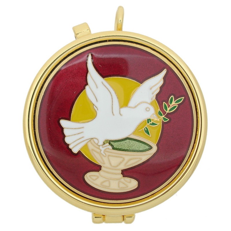 Pyxide Dorée Diam 55 mm Colombe/calice - Em. multicolore