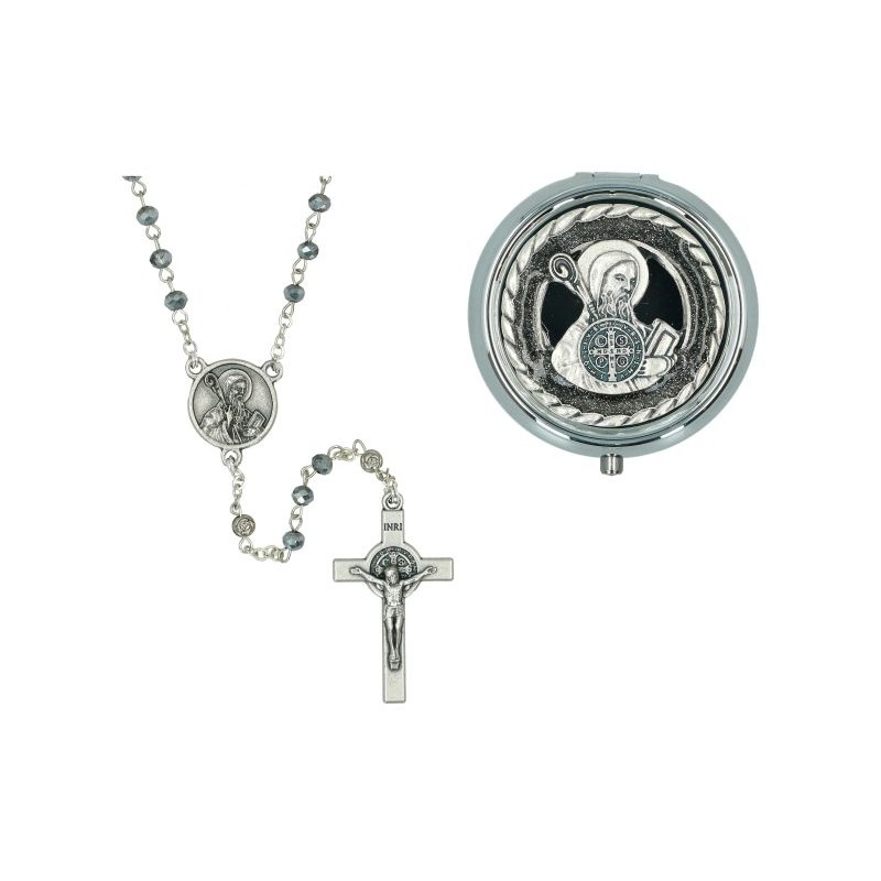 Chapelet St Benoît + Boîte métal émail noir