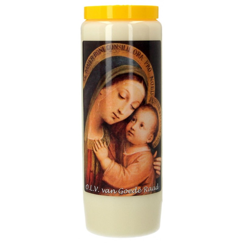 La bougie de neuvaine est toujours blanche, la couleur du plastique peut varier : neuvaine rouge, neuvaine bleue, neuvaine noire, etc