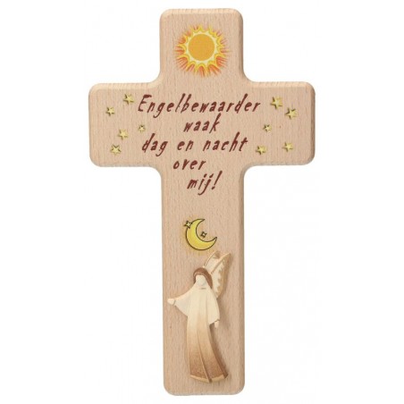 Croix en bois sculpté - 20 cm - 2 tons bois - Mon ange gardien