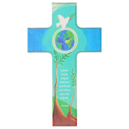Croix et autres décorations en bois avec prières, à suspendre dans votre maison afin d’y apporter un message de paix ainsi que la protection du Christ.