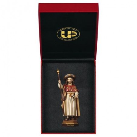 Statue en bois sculpté Saint Jacques avec étui 8 cm couleur
