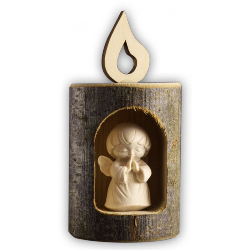 Ange dans rondin en bois sculpté H 11cm x 4.5 cm Naturel