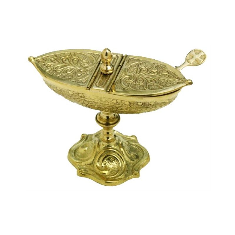 Navette dorée pour Encens + Cuillère - H 13 cm