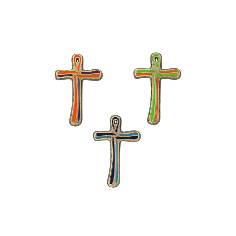 ;croix;murale;10x7;bronze;email;rainures
