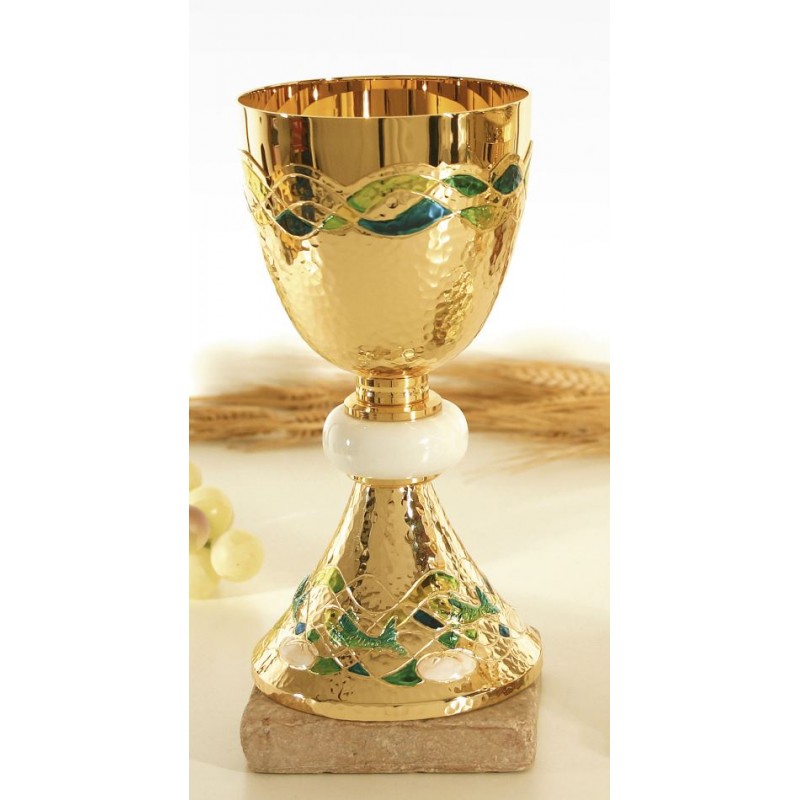 Calice doré - émaillé vert et bleu