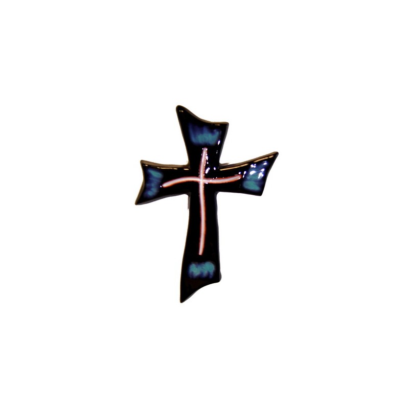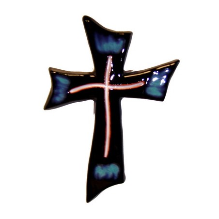 Croix Céramique - 19 X 13 cm - Bleu Foncé