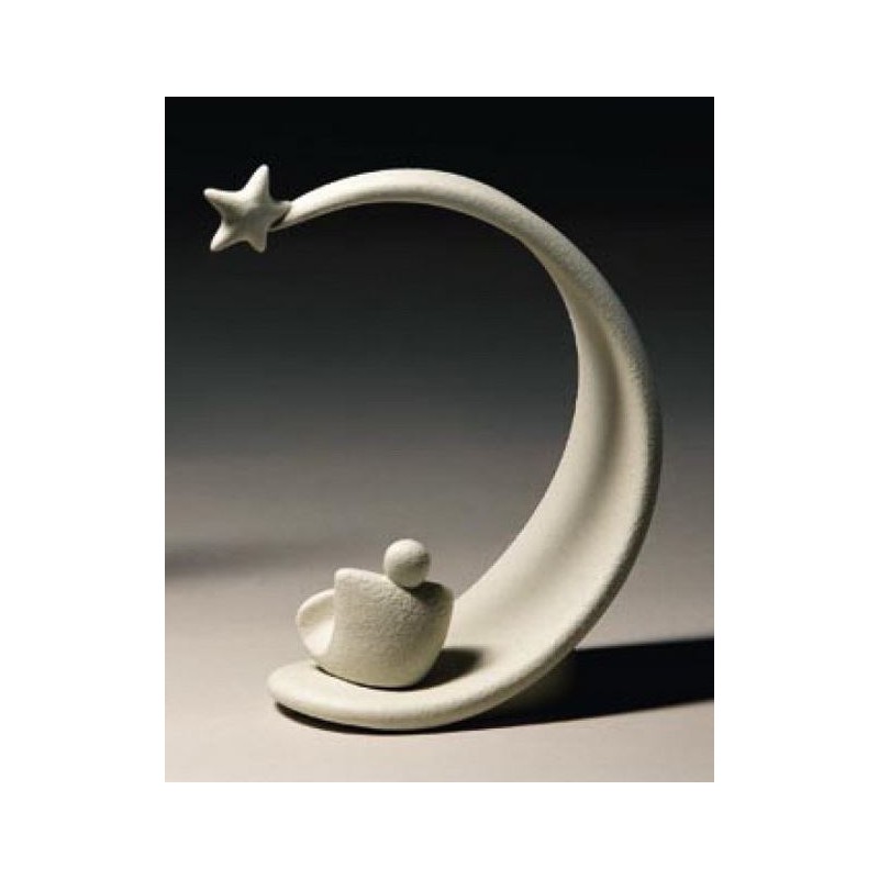 Une représentation très moderne et minimaliste de la nativité. L'enfant Jésus est posé en dessous de l'étoile. Les symboles forts de la nativité sont bien présents dans cette représentation contemporaine.
