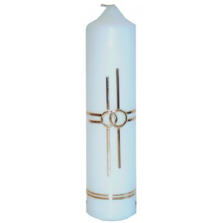 Bougie décorée de symboles religieux représentant le mariage. Le cierge de mariage peut être allumé à l'église durant la cérémonie, béni par le prêtre et repris par les mariés en souvenir. Chaque cierge est emballé dans une boîte individuelle, avec un couvercle transparent.