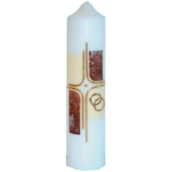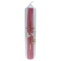 Bougie décorée de symboles religieux représentant le mariage. Le cierge de mariage peut être allumé à l'église durant la cérémonie, béni par le prêtre et repris par les mariés en souvenir. Chaque cierge est emballé dans une boîte individuelle, avec un couvercle transparent.