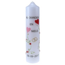 Cierge de mariage - 265 x 60 mm - alliances/coeurs/fleurs