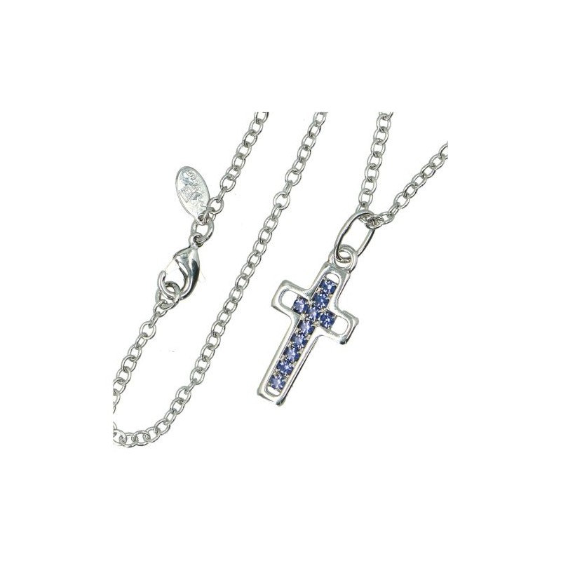 Pendentif Croix Tanzanite + Chaine 50 cm