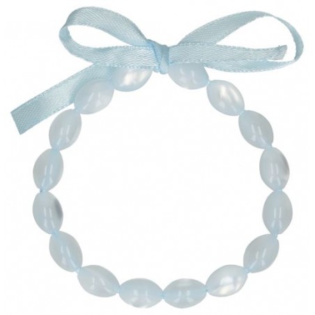 Ce bijou est traditionnellement offert aux bébés pour apaiser le mal de dents. Il existe en plusieurs coloris, dans ce cas en bleu pour les petits garçons.
