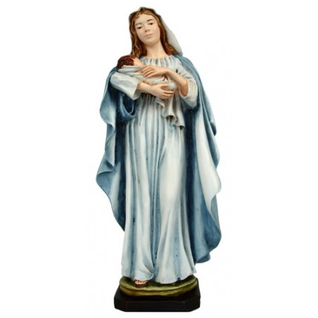 Statue de grande qualité réalisée en Europe et peinte à la main. Un savoir-faire artisanal transmis depuis des générations dans cette famille d'artisans. La statue est en résine, si vous souhaitez l'exposer à l'extérieur nous vous conseillons de mettre un vernis transparent afin de protéger la peinture.
