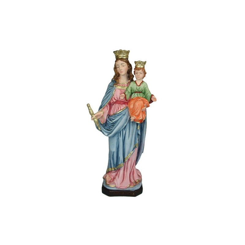 Statue de grande qualité réalisée en Europe et peinte à la main. Un savoir-faire artisanal transmis depuis des générations dans cette famille d'artisans. La statue est en résine, si vous souhaitez l'exposer à l'extérieur nous vous conseillons de mettre un vernis transparent afin de protéger la peinture.