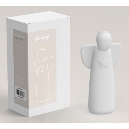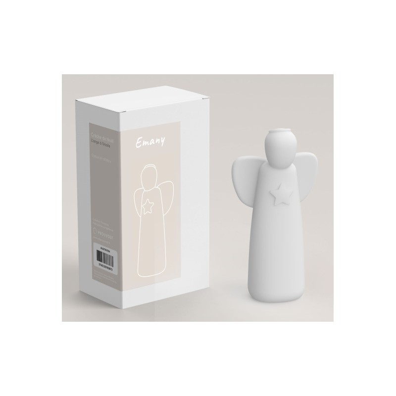 L'ange fait partie de la très moderne crèche Emany. Réalisée en albatre par un designer français, cette crèche de Noël est élégante et minimaliste. Les santons peuvent être achetés séparémment. Cette crèche contemporaine est composée de 12 santons : Marie, Joseph, Jésus, l'âne, le boeuf, les trois rois mages,