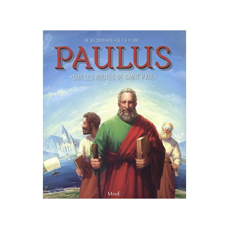 A la suite de saint Paul, partez annoncer la Bonne Nouvelle et évangéliser la Méditerranée. Il y a déjà plusieurs années que le Christ est mort et ressuscité ! A sa suite, les apôtres annoncent son message. Il y a un homme prénommé Saül qui les persécute. Mais, sur la route de Damas, il tombe de cheval et reçoit une révélation. Aveuglé, il se rend compte qu'il était dans l'erreur, se convertit au christianisme, prend le nom de Paul et part sur les routes annoncer à son tour la bonne nouvelle de la résurrection du Christ ! Chacun votre tour, vous allez prendre la place de saint Paul et vous déplacer, prêcher et construire des églises. Vous risquerez, vous aussi d'être aveugle. Tous les joueurs devront collaborer pour parvenir à édifier les églises des villes de Corinthe, Ephèse, Philippes et tant d'autres lieux! Un jeu coopératif qui vous entraînera dans la grande aventure de l'évangélisation du bassin méditerranéen. A partir de 7 ans