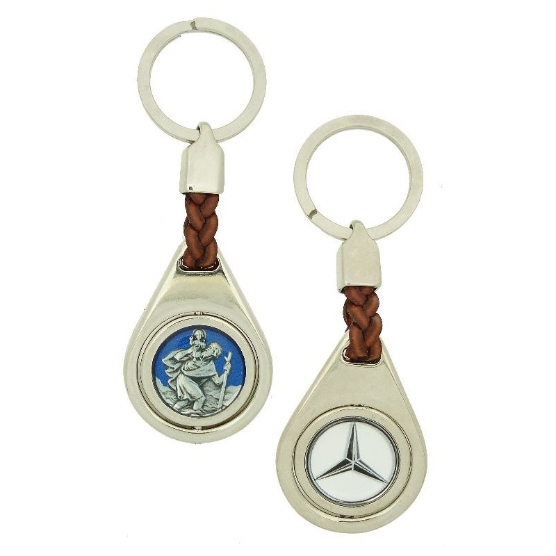 Vous êtes très attachés à la marque de votre voiture?? Mais vous voulez également un symbole religieux sur votre porte-clé?? Nos porte-clefs Saint Christophe en cuir seront parfaits pour vous. Une face avec la représentation de St-Christophe (protecteur des voyageurs, des automobilistes) et une face avec le logo de la marque.