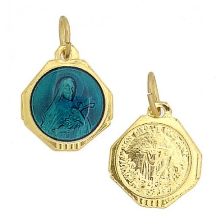 Sainte Thérèse de Lisieux, ou Thérèse de l'Enfant Jésus, est une religieuse carmélite française, dont le retentissement des oeuvres posthumes comme Histoire d'une âme, en font une des plus grandes saintes du XIXème siècle. Sa spiritualité repose sur la recherche de la sainteté dans les actes du quotidien, même les plus insignifiants, à condition de les accomplir dans l'amour de Dieu. Elle est particulièrement vénérée en la basilique de Lisieux, édifiée en son honneur et visitée par plus de 600.000 pèlerins par an. Elle est représentée en habit de carmélite, tenant dans ses mains une croix entourée de roses.