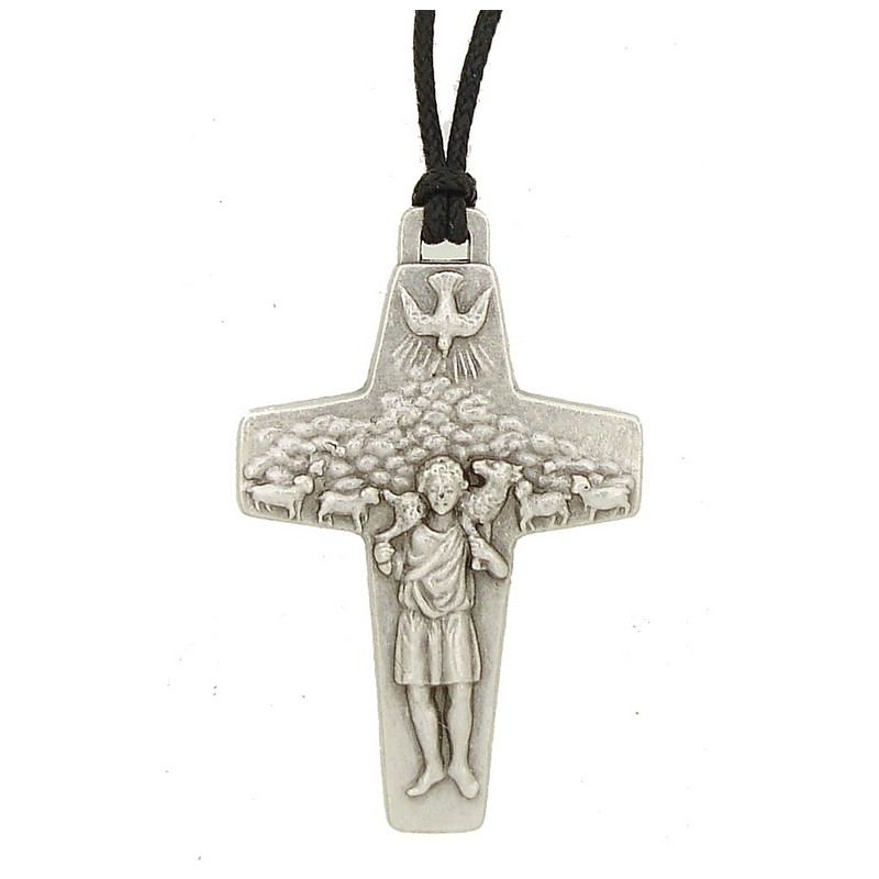 Le Bon Pasteur est un des termes par lesquels Jésus s'identifie. Il fait partie des sept paroles Je suis... et fait allusion à un aspect de la mission de Jésus : celui qui rassemble, guide, recherche (celui qui est égaré) et donne sa vie pour les autres. Il est représenté muni de bandes molletières, vêtu de l'exomide (tunique courte servant de tenue de travail), tenant dans ses mains une houlette, un vase à traire le lait (le mulctra) ou une syrinx (sorte de flûte de pan).