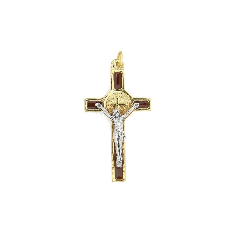 Croix St Benoît - 39 mm - Marron / Doré