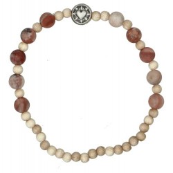 Bracelet sur élastique avec grains bruns Serpentine + médaille et croix