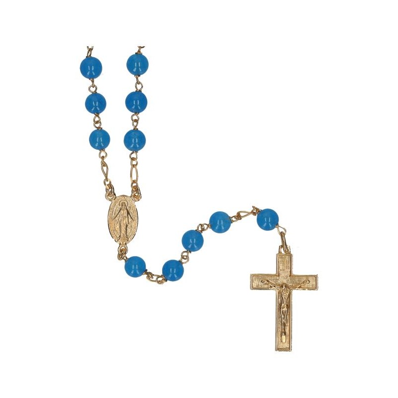 Chapelet plaqué-or - Agate Bleue - 6 mm