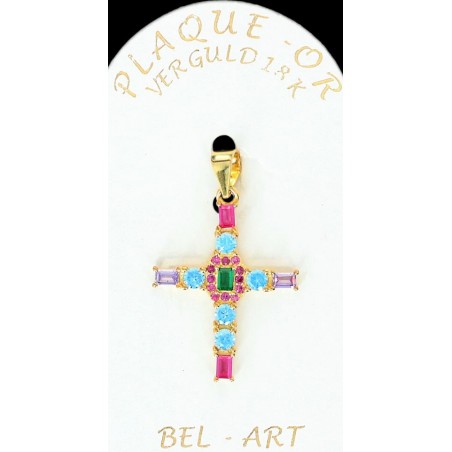 Pendentif croix argent doré avec zircons multicolores 24 x19 mm
