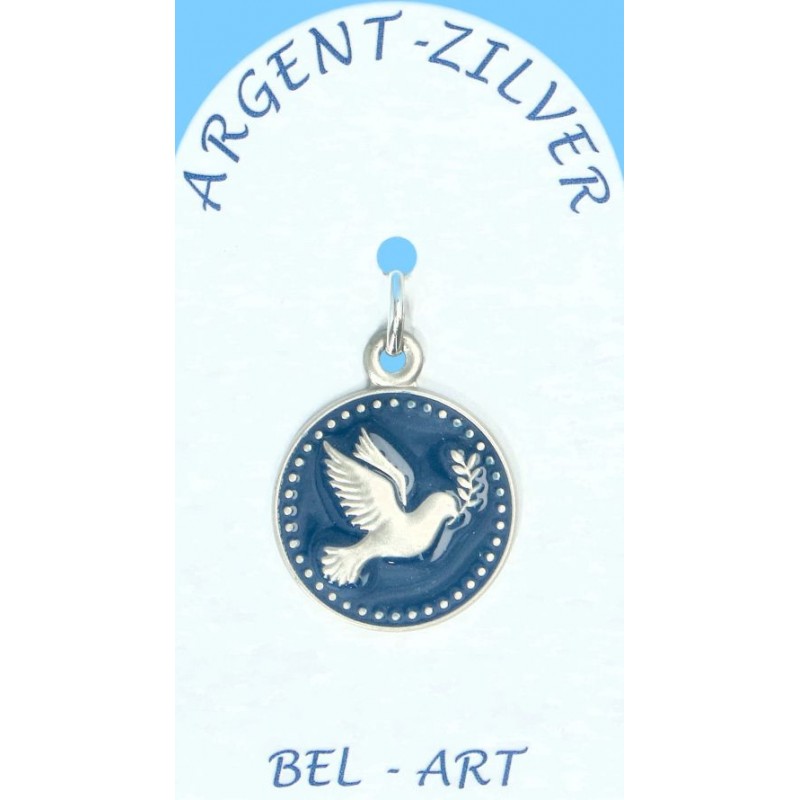 Médaille argent - Colombe de la Paix - 18 mm Email bleu