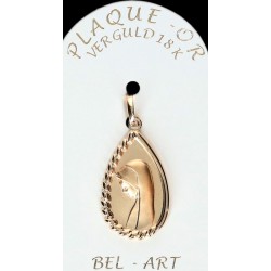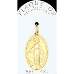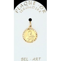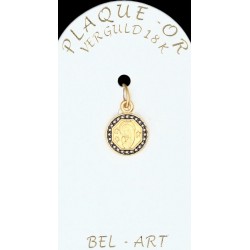 Cette médaille est réalisée en plaqué or. Le bijou est créé en métal et est ensuite recouvert d’une couche d’or. C’est une alternative moins onéreuse à l’or pour un rendu très réussi. Les bijoux en plaqué-or ont une bonne durée de vie, mais il faut éviter de les mettre en contact avec des produits abrasifs.