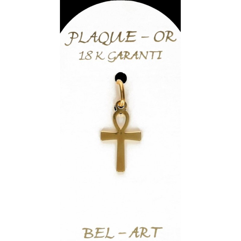 Cette croix est réalisée en plaqué or. Le bijou est créé en métal et est ensuite recouvert d’une couche d’or. C’est une alternative moins onéreuse à l’or pour un rendu très réussi.Les bijoux en plaqué-or ont une bonne durée de vie, mais il faut éviter de les mettre en contact avec des produits abrasifs.