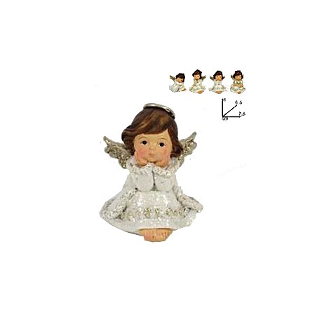 Ange assis de 8 cm - blanc et argenté - 4 modèles assortis