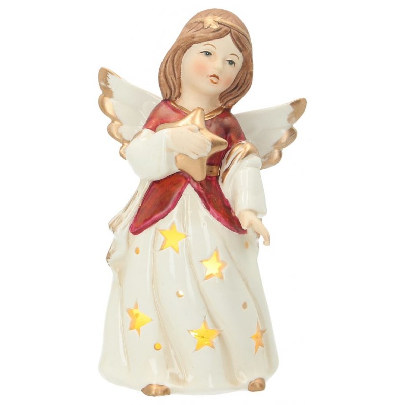 ;ange;porcelaine;rouge;beige;avec;led;16cm