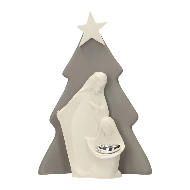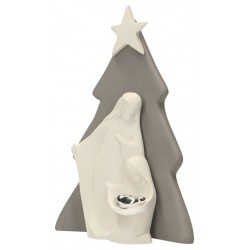 Nativité en résine blanche avec sapin gris ( 10 x15 cm)