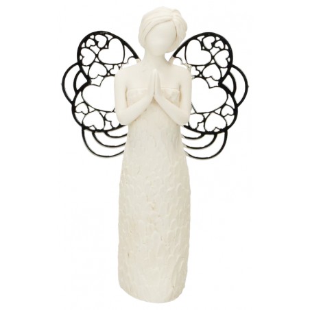 Ange priant en résine avec ailes métaliques 7,5 x 12 cm
