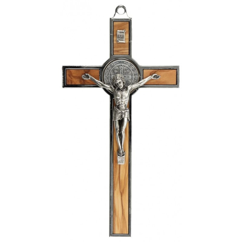 Croix St Benoît 19 X 10 cm - Bois d'Olivier / Métal