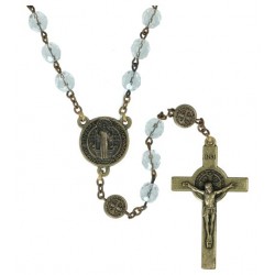 Chapelet de Saint Benoit : le cœur du chapelet (ainsi que les perles du Notre Père dans certains modèles) sont des médailles de Saint Benoit.