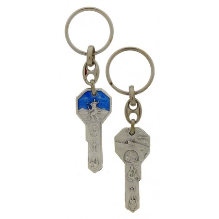 Porte-Clefs - St Christophe / Clef - Bleu Email
