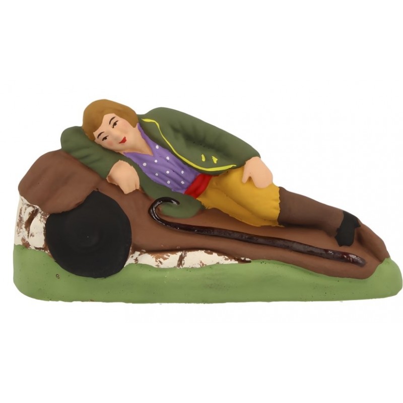 Berger couché de la collection des santons Marcel Carbonel de 7 cm (série N°2).