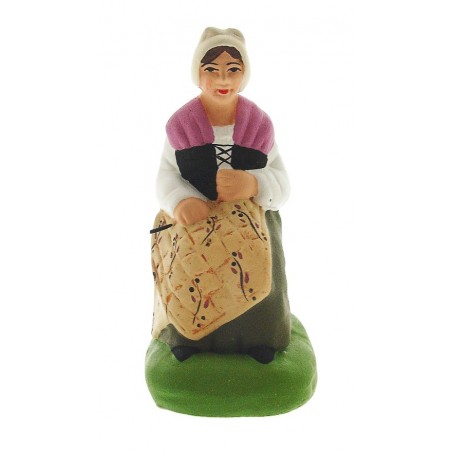 Femme au boutis de la collection des santons Marcel Carbonel de 7 cm (série N°2).