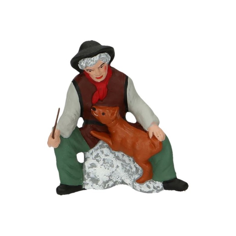 Santon Gateau 7 Cm Homme Assis Avec Chien